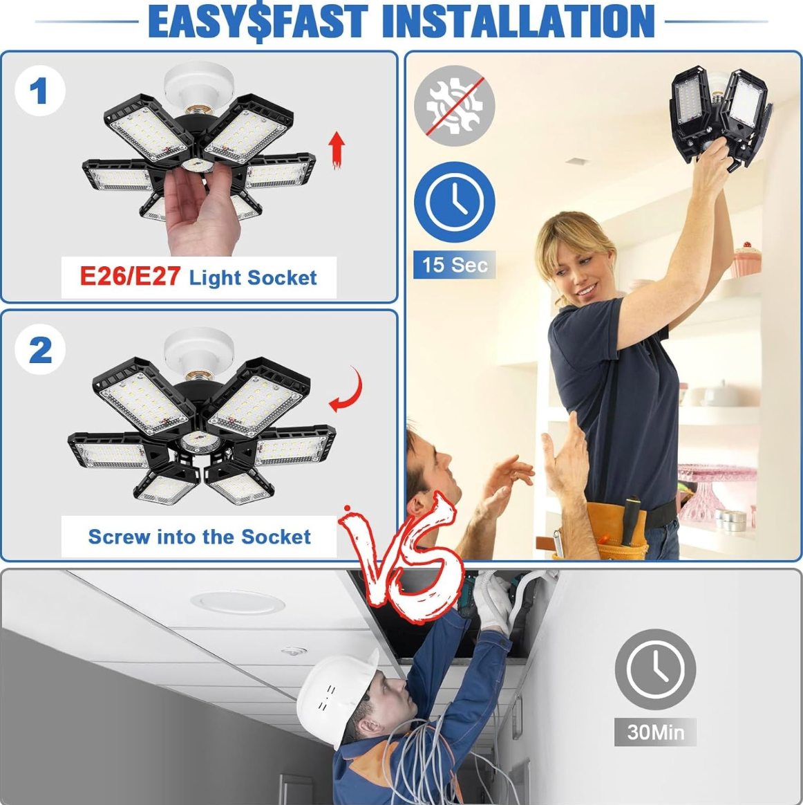 Standard E26/E27 screw base for fast, tool-free installation